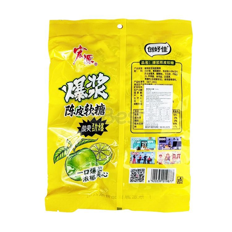 Hongyuan explosion dried tangerine peel gummies 238g, carefully selected fresh tangerine peel, blended with high-quality syrup to create a delicious snack with a chewy and bursting texture for export. It is suitable for both sour and sweet flavors, with a rich fruity aroma, making it perfect for gatherings, sharing, or daily cravings. Direct consumption, no processing required, and free of artificial colors and preservatives, healthy and safe, leaving an endless aftertaste.
